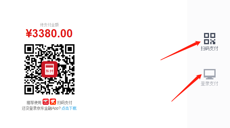 第四步:使用京東APP或者京東金融APP掃碼支付,或者直接登錄京東賬號去支付