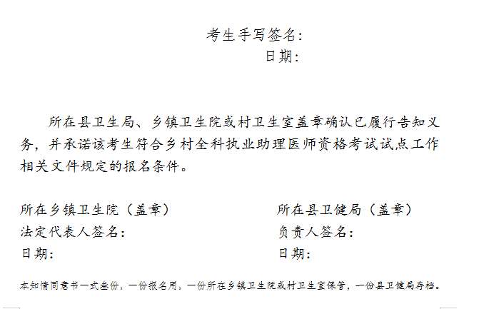 報(bào)考鄉(xiāng)村全科執(zhí)業(yè)助理醫(yī)師知情同意書(shū)(2021年版)