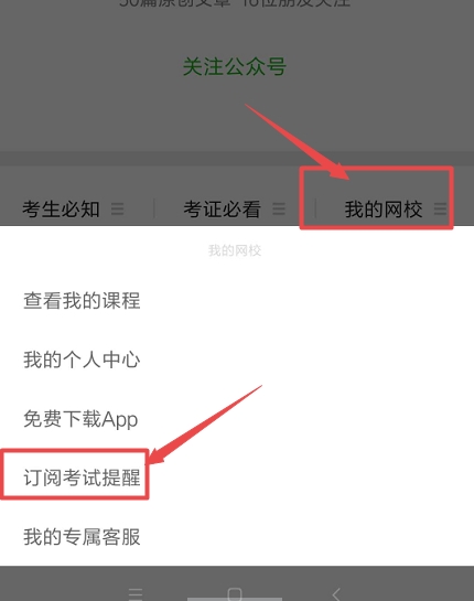 第二步,選擇「我的網(wǎng)?!?「訂閱考試提醒」