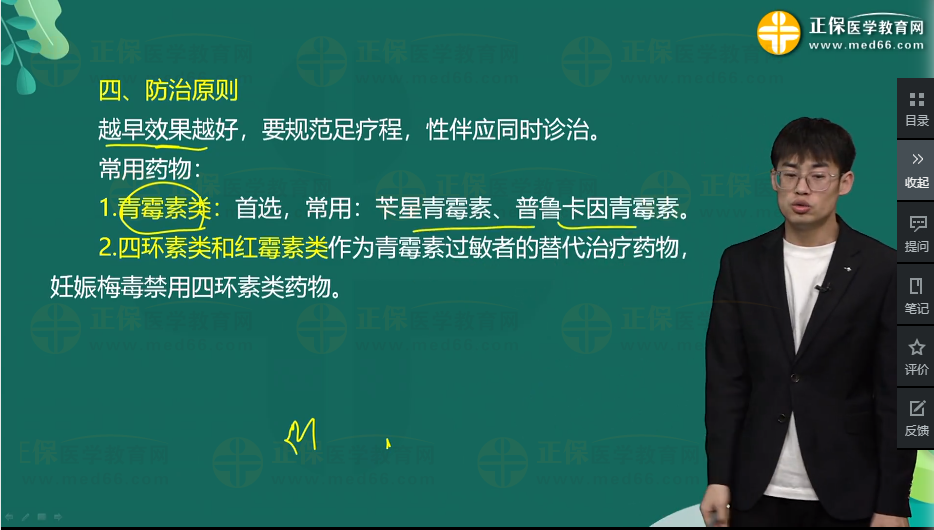 2.四環(huán)素類和紅霉素類作為青霉素過敏者的替代治療藥物,妊娠梅毒禁用四環(huán)素類藥物。