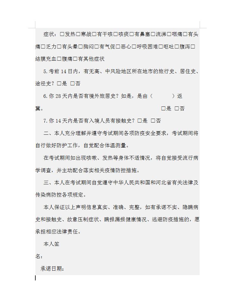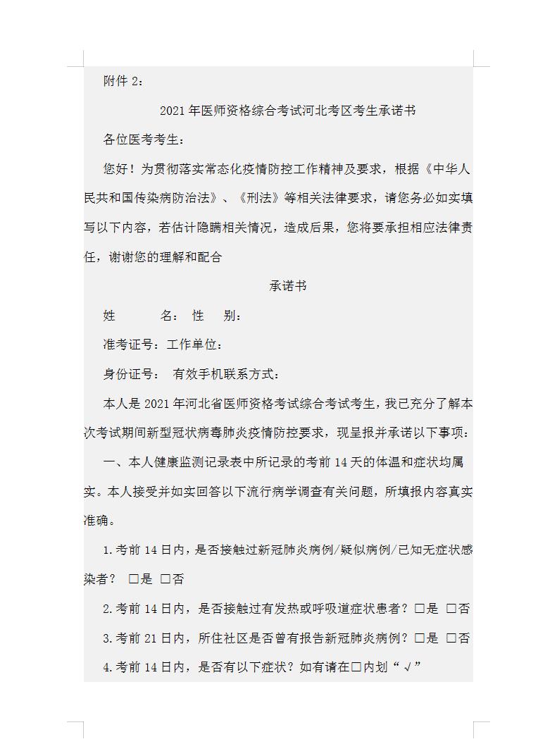 附件: 附件2:2021年醫(yī)師資格綜合考試河北考區(qū)考生承諾書