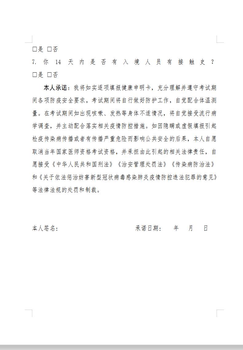 - · 2021年南寧考點鄉(xiāng)村全科助理醫(yī)師資格考試-考生健康承諾書