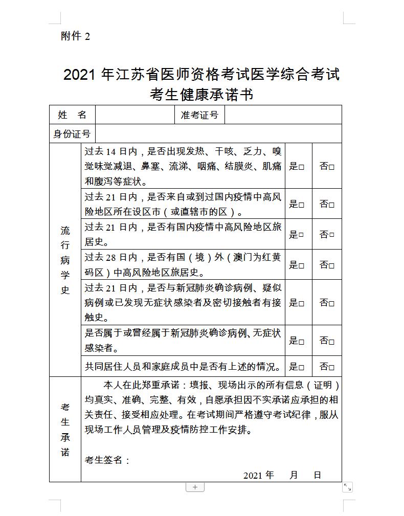 揚州考點2021年鄉(xiāng)村全科助理醫(yī)師資格考試《考生健康承諾書》