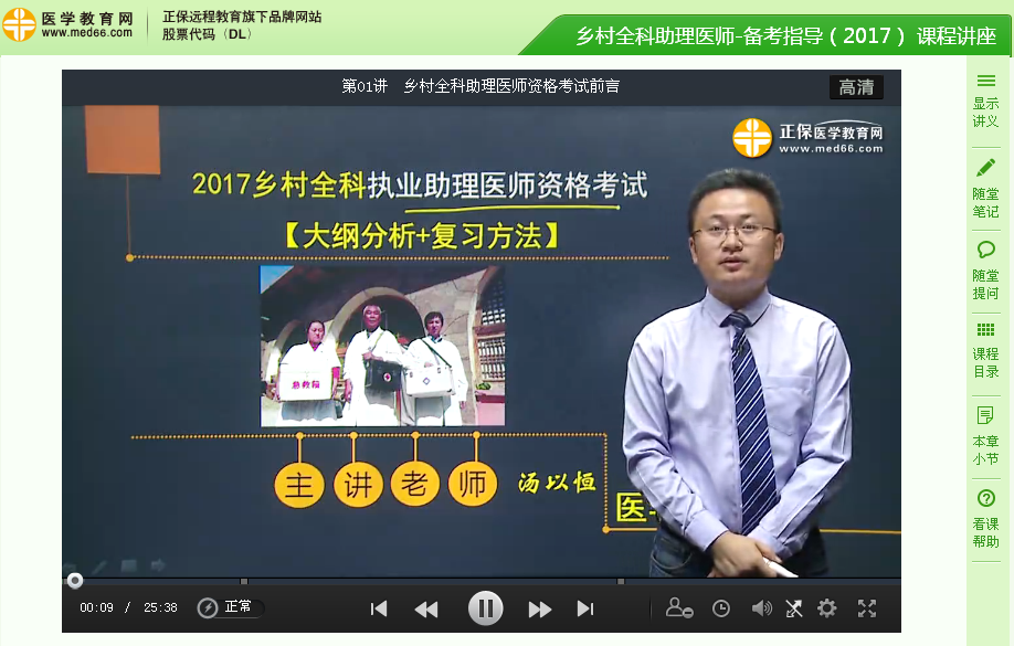 醫(yī)學教育網獨家老師湯以恒為幫助正在備考2017年鄉(xiāng)村全科助理醫(yī)師考試的考生能夠更快速地進入復習狀態(tài),特錄制了一段2017年鄉(xiāng)村全科助理醫(yī)師考試備考指導視頻講座,這段視頻講座包含了大綱解析、復習計劃及應試技巧。