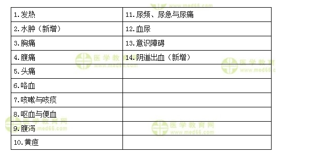 考試大綱規(guī)定的14個常見癥狀(順序調(diào)整)