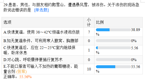 患者,男性,與朋友相約爬雪山,遭遇暴風(fēng)雪,被凍傷。關(guān)于凍傷的現(xiàn)場急救說法錯誤的是