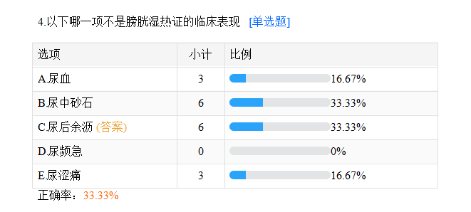 以上就是醫(yī)學(xué)教育網(wǎng)關(guān)于“【鄉(xiāng)村模擬試題】以下哪一項不是膀胱濕熱證的臨床表現(xiàn)”的相關(guān)介紹,希望能夠幫助到大家,更多資訊盡在醫(yī)學(xué)教育網(wǎng)鄉(xiāng)村全科助理醫(yī)師欄目!