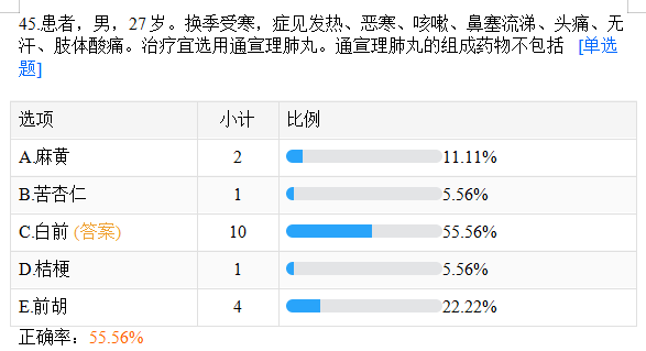 以上就是醫(yī)學(xué)教育網(wǎng)關(guān)于“【基礎(chǔ)摸底測(cè)試】通宣理肺丸的組成藥物不包括”的相關(guān)介紹,希望能夠幫助到大家,更多資訊盡在醫(yī)學(xué)教育網(wǎng)鄉(xiāng)村全科助理醫(yī)師欄目!