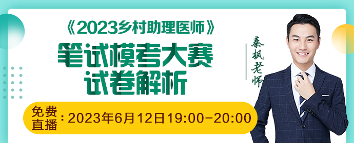 想體驗完整版??即筚愒囶}?立即參與2023年鄉(xiāng)村全科助理醫(yī)師筆試??即筚悳y試>>,答題結束后,提醒各位考生及時關注網校秦楓老師準備的《2023年鄉(xiāng)村全科助理醫(yī)師考試??即筚愒囶}解析》直播課,查看直播>>