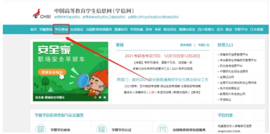 第一步:登錄【學信網】網站:http://www.chsi.com.cn。點擊官網首頁導航欄【學歷查詢】