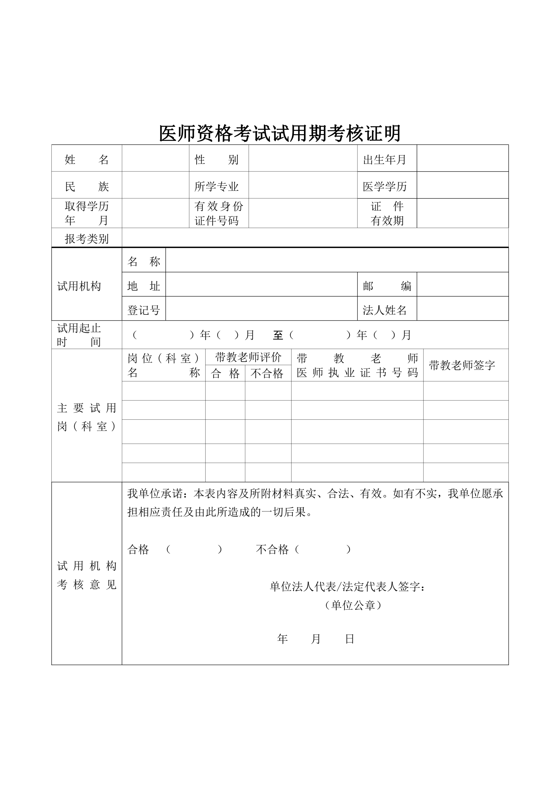 【附件下載】醫(yī)師資格考試試用期考核證明