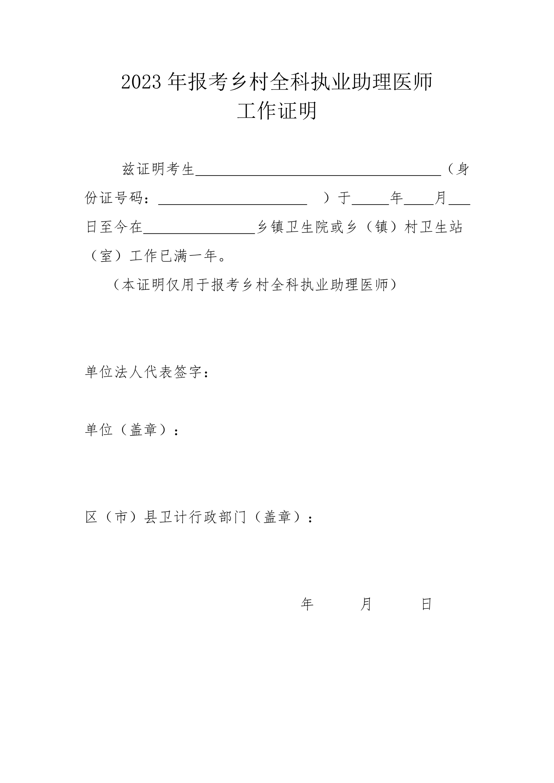 【附件下載】2023年報(bào)考鄉(xiāng)村全科執(zhí)業(yè)助理醫(yī)師工作證明