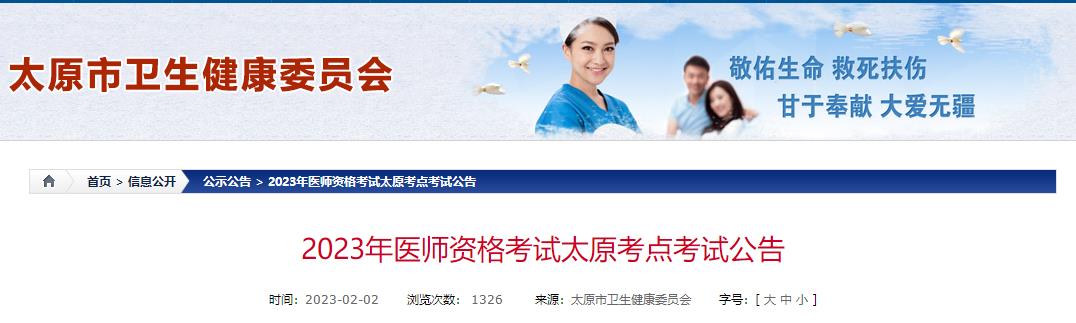 根據(jù)《中華人民共和國醫(yī)師法》《醫(yī)師資格考試暫行辦法》、山西省醫(yī)師資格考試領(lǐng)導(dǎo)小組辦公室2023年第1號公告規(guī)定,現(xiàn)將我市(太原考點)2023年醫(yī)師資格考試工作有關(guān)事項公告如下: