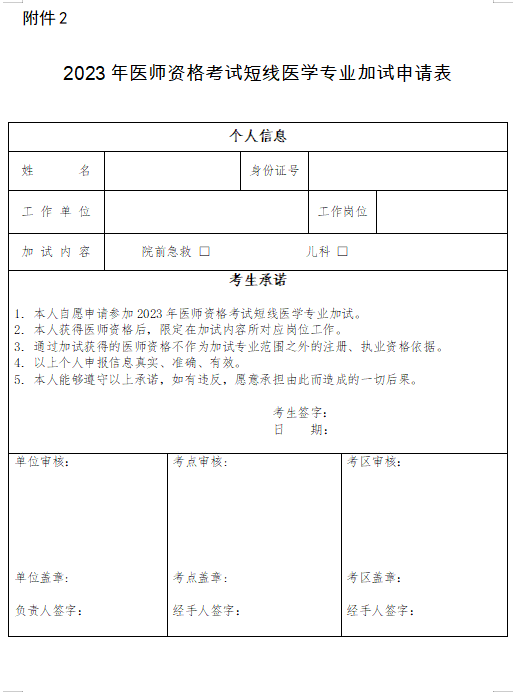 2.《2023年醫(yī)師資格考試短線醫(yī)學專業(yè)加試申請表》