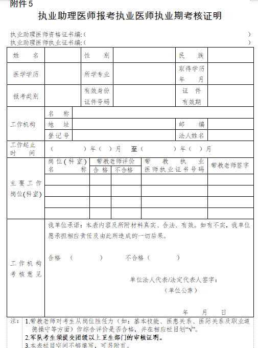 5.《執(zhí)業(yè)助理醫(yī)師報考執(zhí)業(yè)醫(yī)師執(zhí)業(yè)期考核證明》
