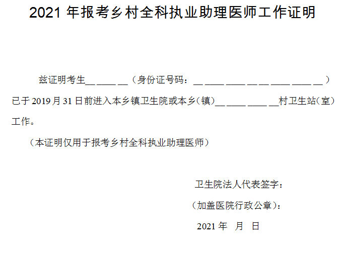 四川瀘州2021年報(bào)考鄉(xiāng)村全科執(zhí)業(yè)助理醫(yī)師工作證明