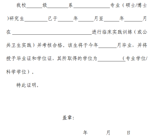 2021年鄉(xiāng)村全科助理醫(yī)師報名當年畢業(yè)研究生完成實踐訓練并考核合格證明