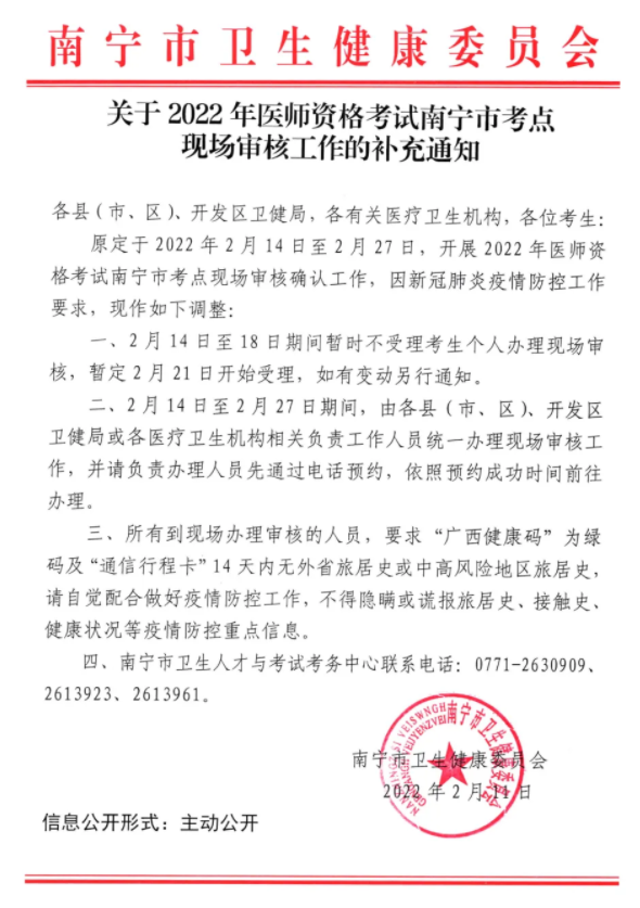 2022年鄉(xiāng)村全科助理醫(yī)師南寧考點現(xiàn)場確認暫定2月21日開始受理