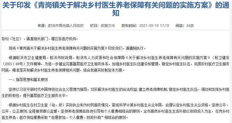 四川省青崗鎮(zhèn)關(guān)于印發(fā)《青崗鎮(zhèn)關(guān)于解決鄉(xiāng)村醫(yī)生養(yǎng)老保障有關(guān)問(wèn)題的實(shí)施方案》的通知