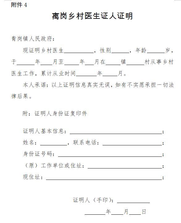 射洪市青崗鎮(zhèn)村醫(yī)養(yǎng)老保障《離崗鄉(xiāng)村醫(yī)生證人證明》模板(附下載)