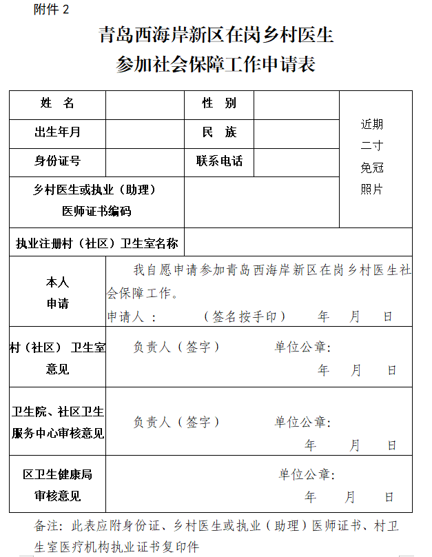 青島西海岸新區(qū)《在崗鄉(xiāng)村醫(yī)生參加社會保障工作申請表》模板下載
