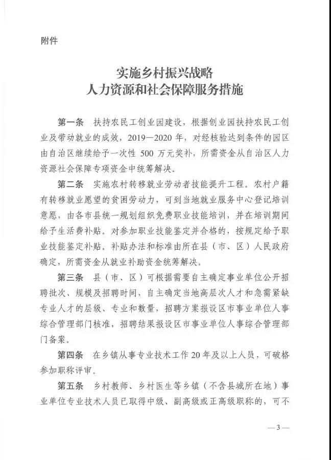 近日,廣西自治區(qū)人力資源社會保障廳等5部門聯(lián)合印發(fā)《實施鄉(xiāng)村振興戰(zhàn)略人力資源和社會保障服務措施》(以下簡稱《措施》),從就業(yè)創(chuàng)業(yè)到激發(fā)專業(yè)人才積極性等方面做了很多部署。