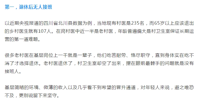 村衛(wèi)生室斷崖式減少,受這3大因素直接影響