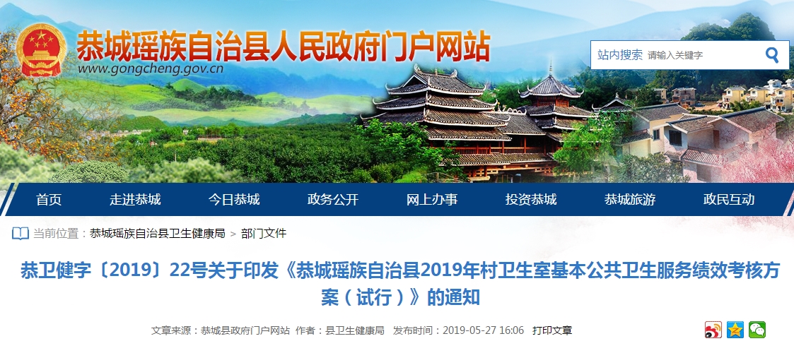 近日,廣西恭城縣衛(wèi)健局下發(fā)《恭城瑤族自治縣2019年村衛(wèi)生室基本公共衛(wèi)生服務績效考核方案(試行)》的通知,村醫(yī)該拿多少公衛(wèi)補助、家庭醫(yī)生簽約經(jīng)費,寫得明明白白。