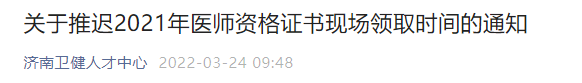 濟(jì)南市關(guān)于推遲領(lǐng)取2021年鄉(xiāng)村全科助理醫(yī)師資格證書的通知