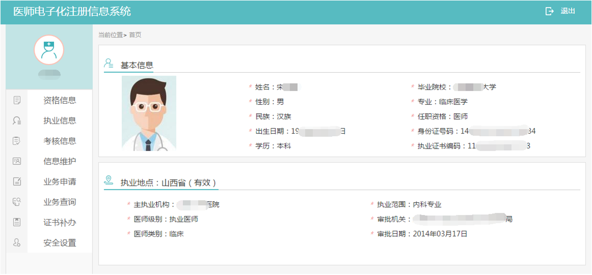 (2)查看醫(yī)師本人的執(zhí)業(yè)信息。