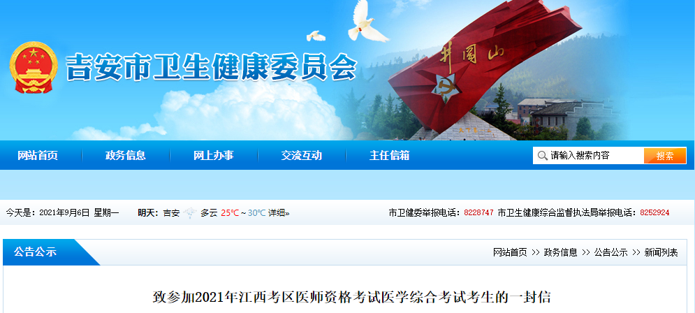 江西省吉安市2021年醫(yī)師資格考試綜合考試考前考生須知