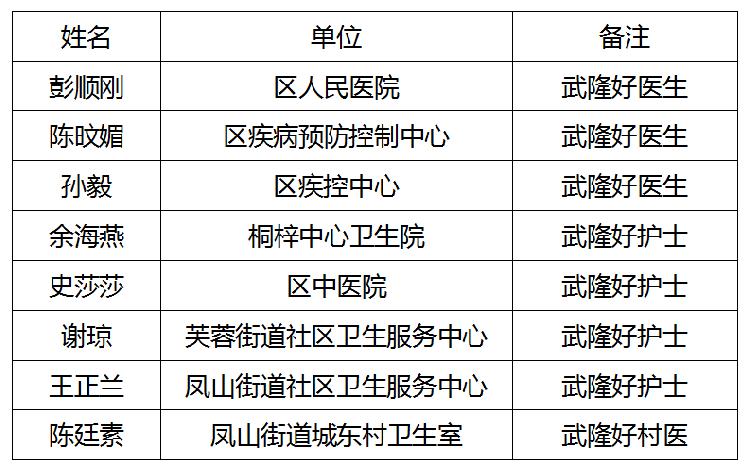 (“武隆好醫(yī)生、武隆好護(hù)士、武隆好村醫(yī)”2020 年第二季度人物名單)