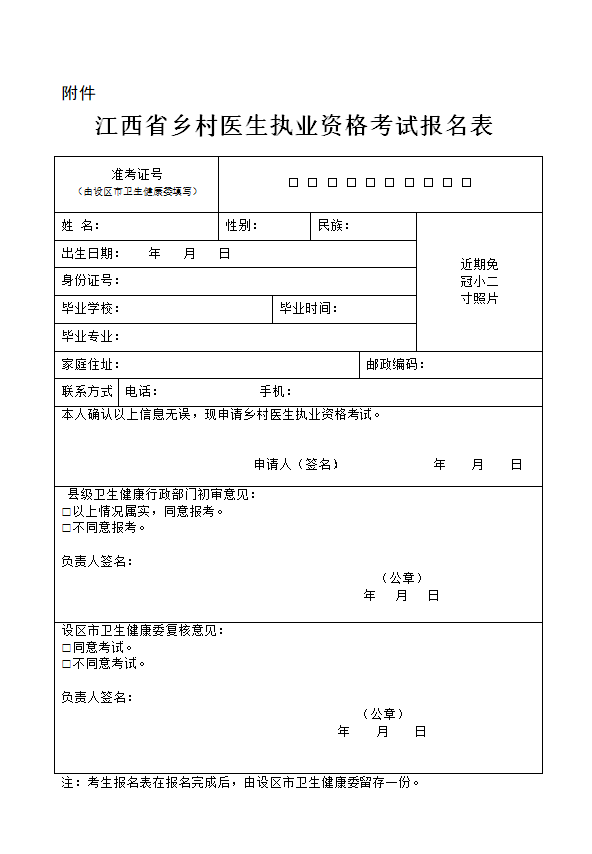 附件:江西省鄉(xiāng)村醫(yī)生執(zhí)業(yè)資格考試報名表