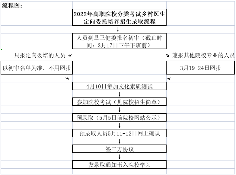 五、志愿填報。參加初審通過考生除填報臨床或中醫(yī)學專業(yè)志愿外,按照當年度高等職業(yè)院校分類考試實施辦法,可于3月19日-3月24日登錄省考試院網站參加其他專業(yè)分類考試志愿填報。僅報考鄉(xiāng)村醫(yī)生定向委托培養(yǎng)計劃的考生無需填報。