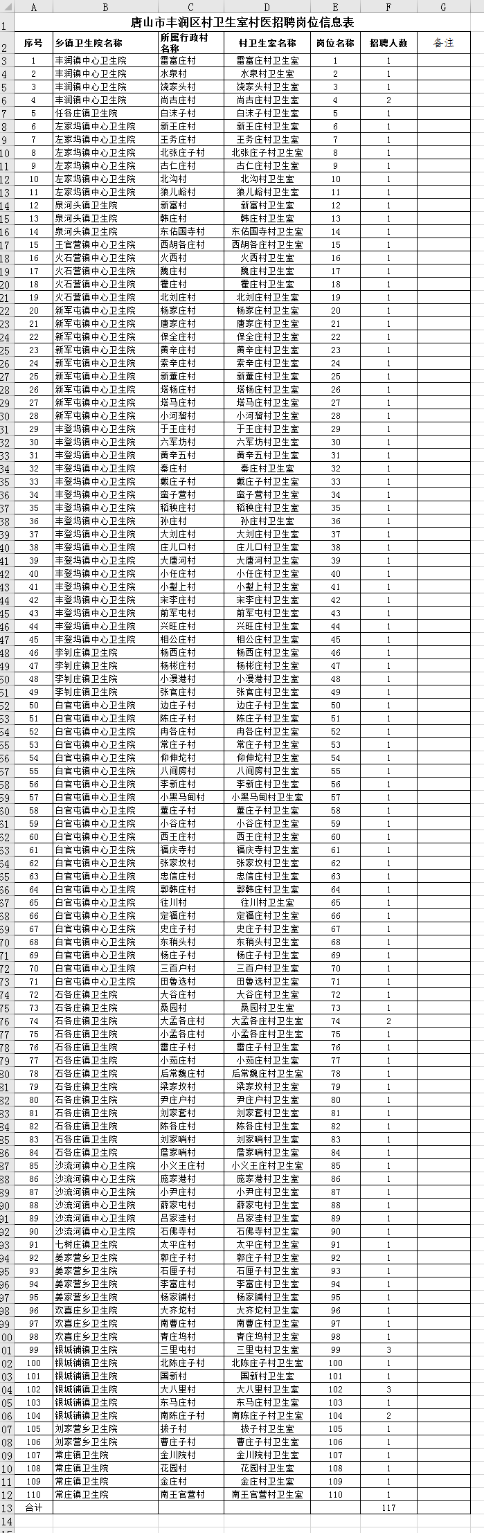 附件:唐山市豐潤(rùn)區(qū)村衛(wèi)生室村醫(yī)招聘崗位信息表