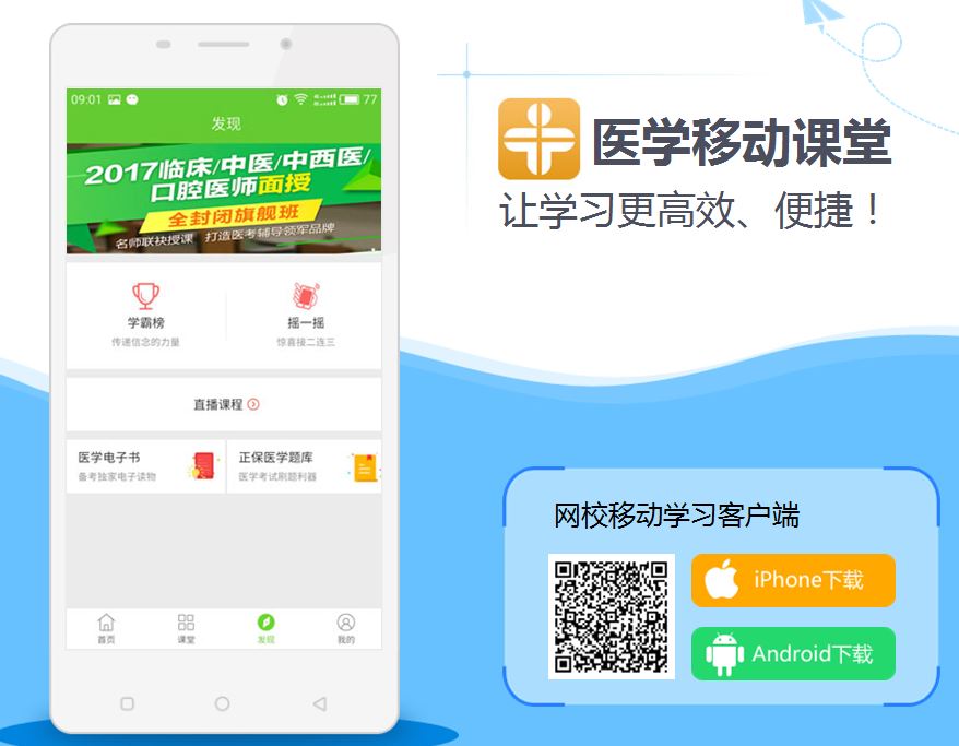 醫(yī)學(xué)移動(dòng)課堂:醫(yī)學(xué)教育網(wǎng)移動(dòng)學(xué)習(xí)客戶端,看視頻課程、做題、答疑讓你隨時(shí)隨地完成,充分利用碎片化時(shí)間讓它助您輕松備考。點(diǎn)擊了解詳情>>