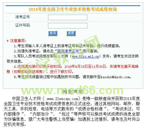2016年心血管內(nèi)科主治醫(yī)師考試成績單打印入口: