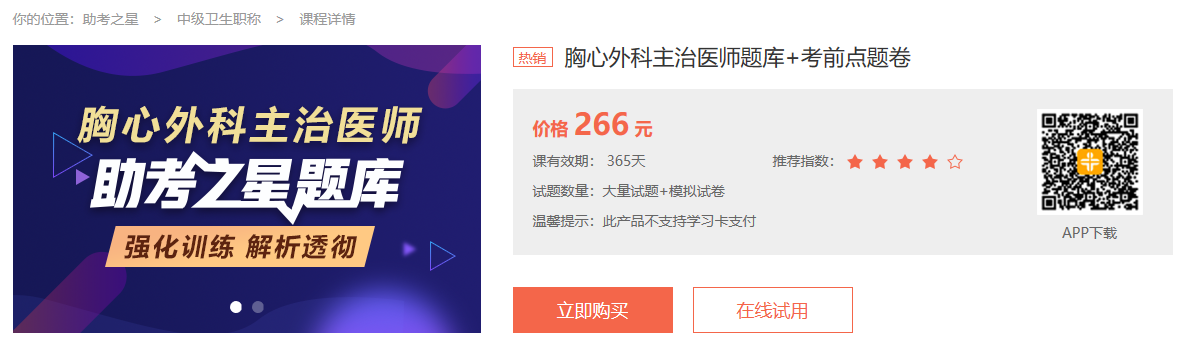 2020年胸心外科主治醫(yī)師模擬試題庫哪里有?參加胸心外科主治醫(yī)師考試的考生,都在為了如何更好備考而絞盡腦汁,想要多做題,查缺補(bǔ)漏?想多做好題,提升應(yīng)試技能?胸心外科主治醫(yī)師考試好幫手,醫(yī)學(xué)教育網(wǎng)助考之星題庫軟件來襲!