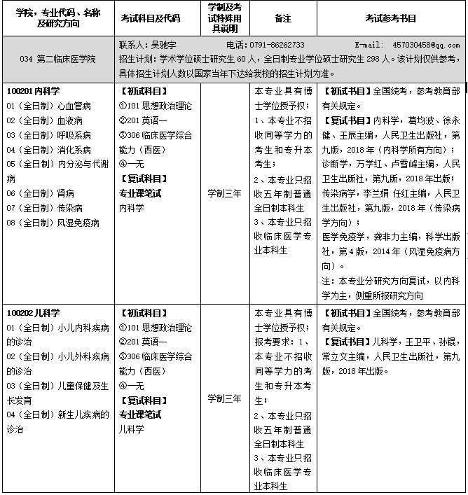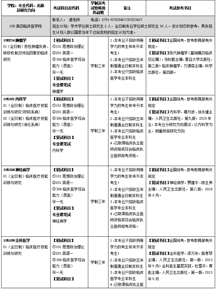 南昌大學(xué)2021年第四臨床醫(yī)學(xué)院招生專業(yè)目錄