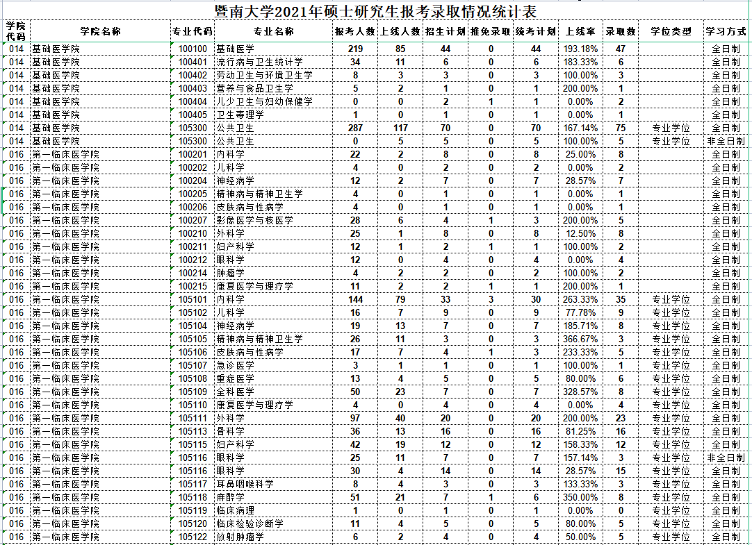 想要考研的同學(xué)沒有不知道報(bào)錄比的重要性的,暨南大學(xué)發(fā)布了“2021年碩士研究生報(bào)考錄取情況統(tǒng)計(jì)表”,其中護(hù)理專業(yè)的報(bào)考錄取情況小編已經(jīng)幫大家整理如下,請(qǐng)各位目標(biāo)院校是暨南大學(xué)醫(yī)學(xué)專業(yè)的同學(xué)注意查看!