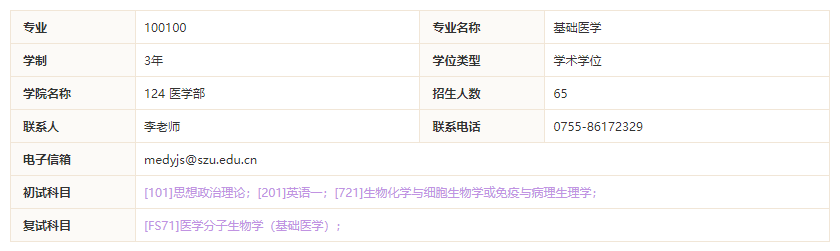 以上是醫(yī)學(xué)教育網(wǎng)小編整理的“深圳大學(xué)2022年基礎(chǔ)醫(yī)學(xué)專業(yè)學(xué)位招生人數(shù)與初試科目”全部內(nèi)容,想了解更多醫(yī)學(xué)專業(yè)碩士研究生考試的動(dòng)態(tài)資訊、政策解析與公共課內(nèi)容,請點(diǎn)擊醫(yī)學(xué)教育網(wǎng)。