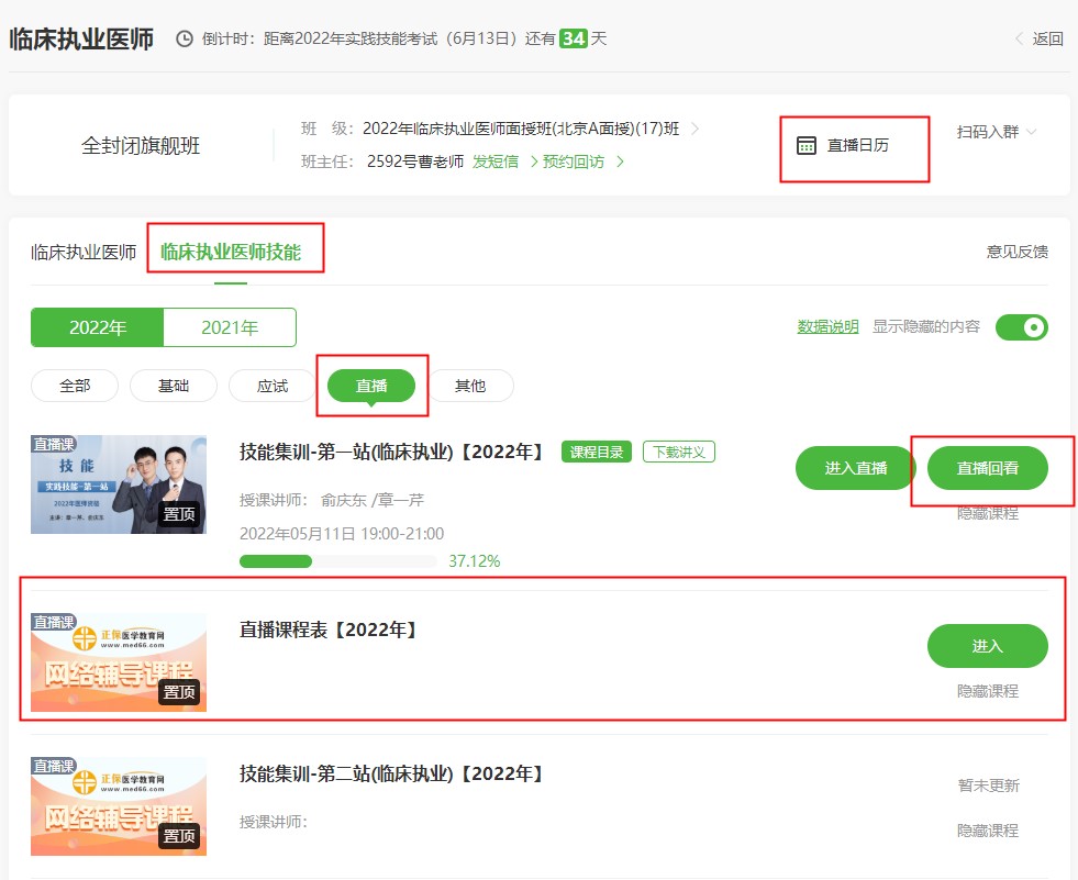 進(jìn)入5月中旬,要逐步啟動(dòng)實(shí)踐技能專(zhuān)項(xiàng)復(fù)習(xí)。網(wǎng)校面授旗艦班以及旗艦直播班贈(zèng)送的2022醫(yī)師資格實(shí)踐技能集訓(xùn)營(yíng)已開(kāi)課,醫(yī)學(xué)教育網(wǎng)面授小編專(zhuān)門(mén)整理了2022醫(yī)師資格實(shí)踐技能集訓(xùn)營(yíng)看課方法及課表安排如下,不清楚如何觀看直播的學(xué)員仔細(xì)查看。
