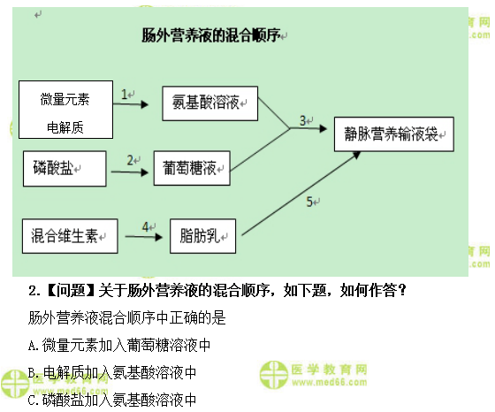 2.【問題】關(guān)于腸外營養(yǎng)液的混合順序,如下題,如何作答?