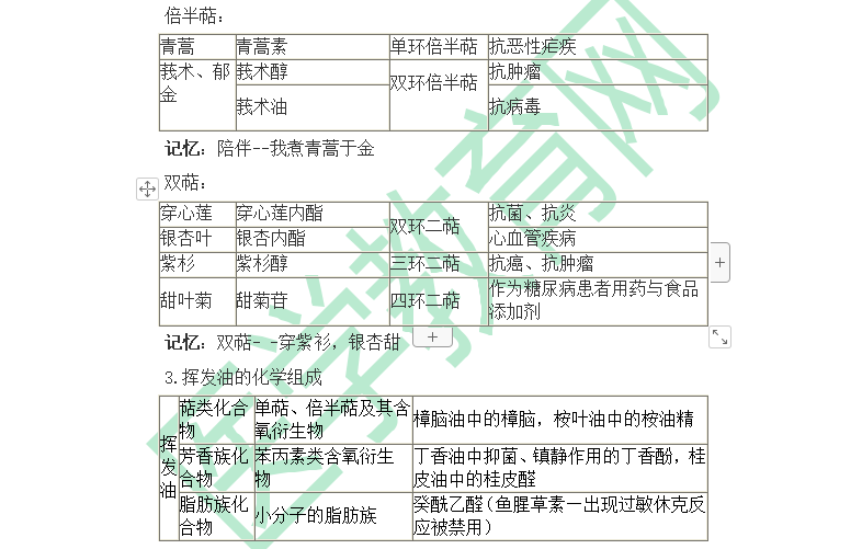 萜類與揮發(fā)油的考查點不多,集中在結(jié)構(gòu)特點上,注意重點復習。