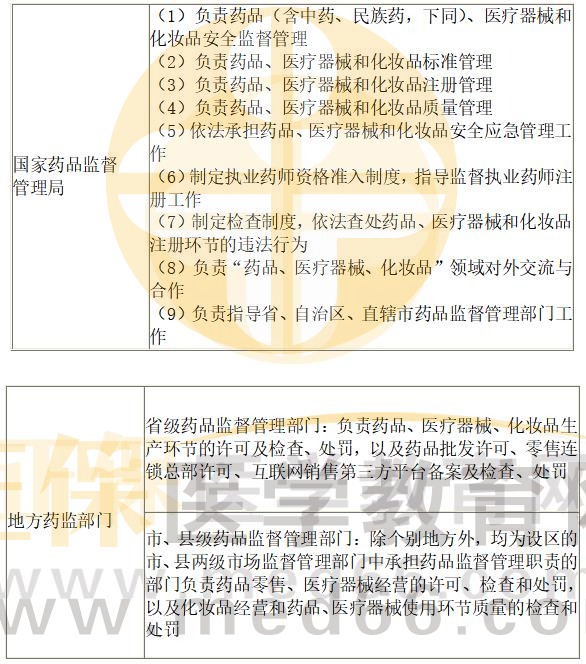 以上是醫(yī)學(xué)教育網(wǎng)小編為大家整理的“《法規(guī)》??键c(diǎn):國家藥品監(jiān)督管理部門職責(zé)”的相關(guān)介紹,希望以上內(nèi)容對(duì)大家有幫助!