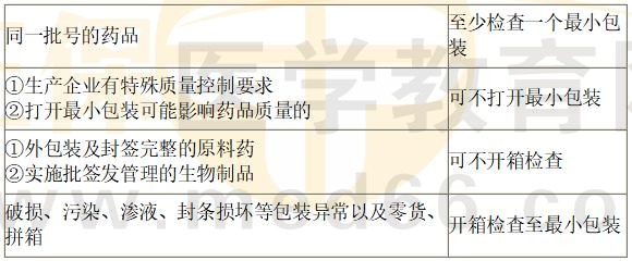 【解析】同一批號的藥品:至少檢查一個最小包裝;