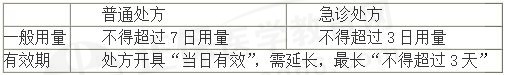 【解析】處方一般不得超過7日用量;急診處方一般不得超過3日用量。