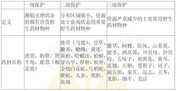 以上是醫(yī)學(xué)教育網(wǎng)小編為大家整理的“《法規(guī)》常考點:國家重點保護野生藥材物種的分級、藥材名稱”的相關(guān)介紹,希望以上內(nèi)容對大家有幫助!