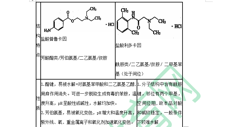 4. 鹽酸普魯卡因、鹽酸利多卡因結(jié)構(gòu)特點(diǎn)、性質(zhì)和用途