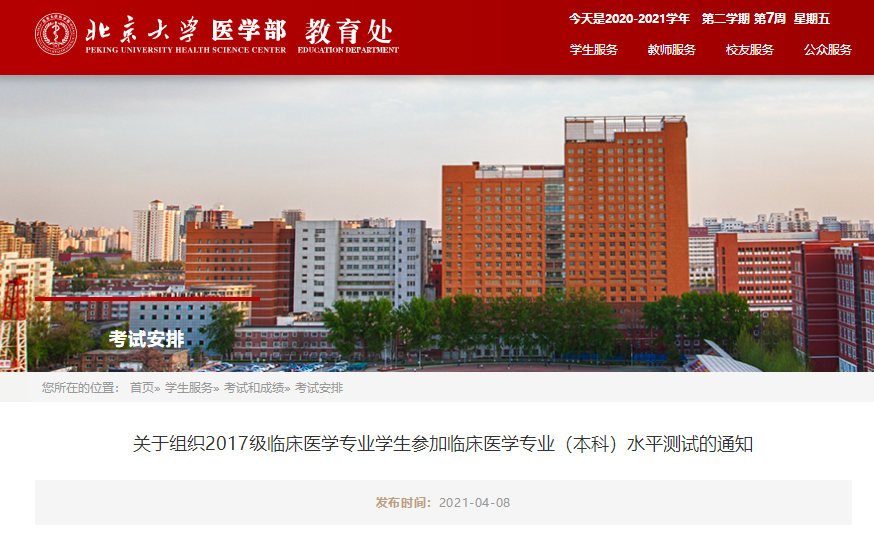 北京大學(xué)發(fā)布關(guān)于組織2017級(jí)臨床醫(yī)學(xué)專業(yè)學(xué)生參加臨床醫(yī)學(xué)專業(yè)(本科)水平測(cè)試的通知通知,相信參加北京大學(xué)臨床醫(yī)學(xué)院2021年臨床醫(yī)學(xué)專業(yè)(本科)水平測(cè)試的考生都在關(guān)注,為方便大家了解,在此醫(yī)學(xué)教育網(wǎng)小編為大家整理如下內(nèi)容: